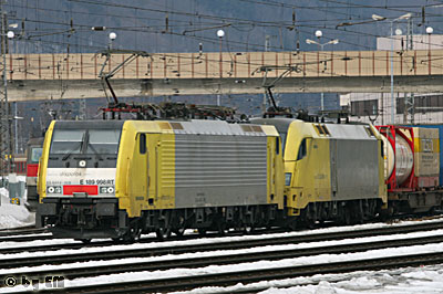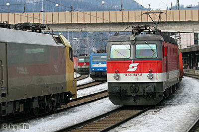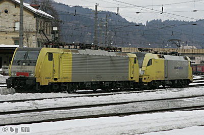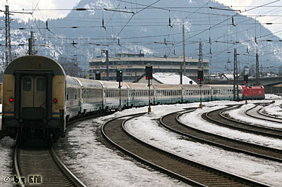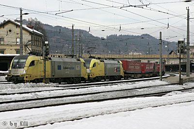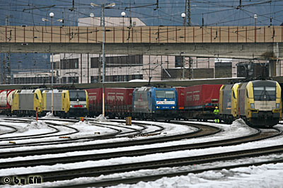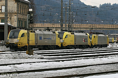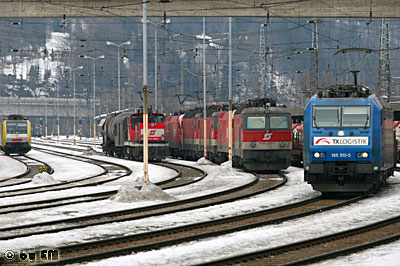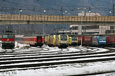 | Besuch im Bhf Kufstein am Di, 21.2.06 - sehr interessant wegen zahlreicher Eloks ( v.a. ES 64 F4 und ES 64 U2 ) privater EVUs | ||