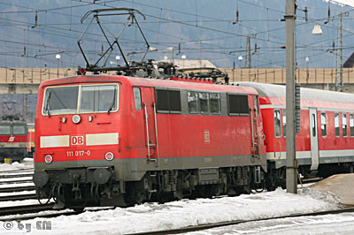 111 017 mit R 5116 Ri Rosenheim fährt in den Bhf ein | |