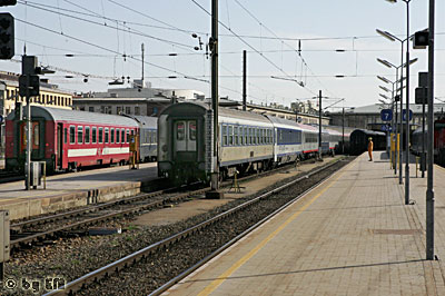 8 und 9 um 9:36 : Gleis 8 mit EN 236 / EN 263 und Gleis 9 mit D 346 DACIA |